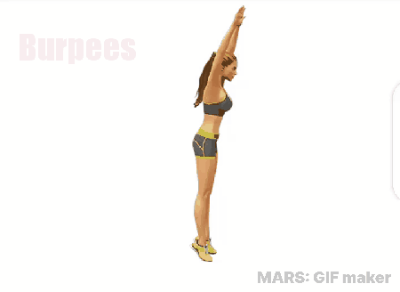 Now raise your arms up with a little jump and come to the starting position